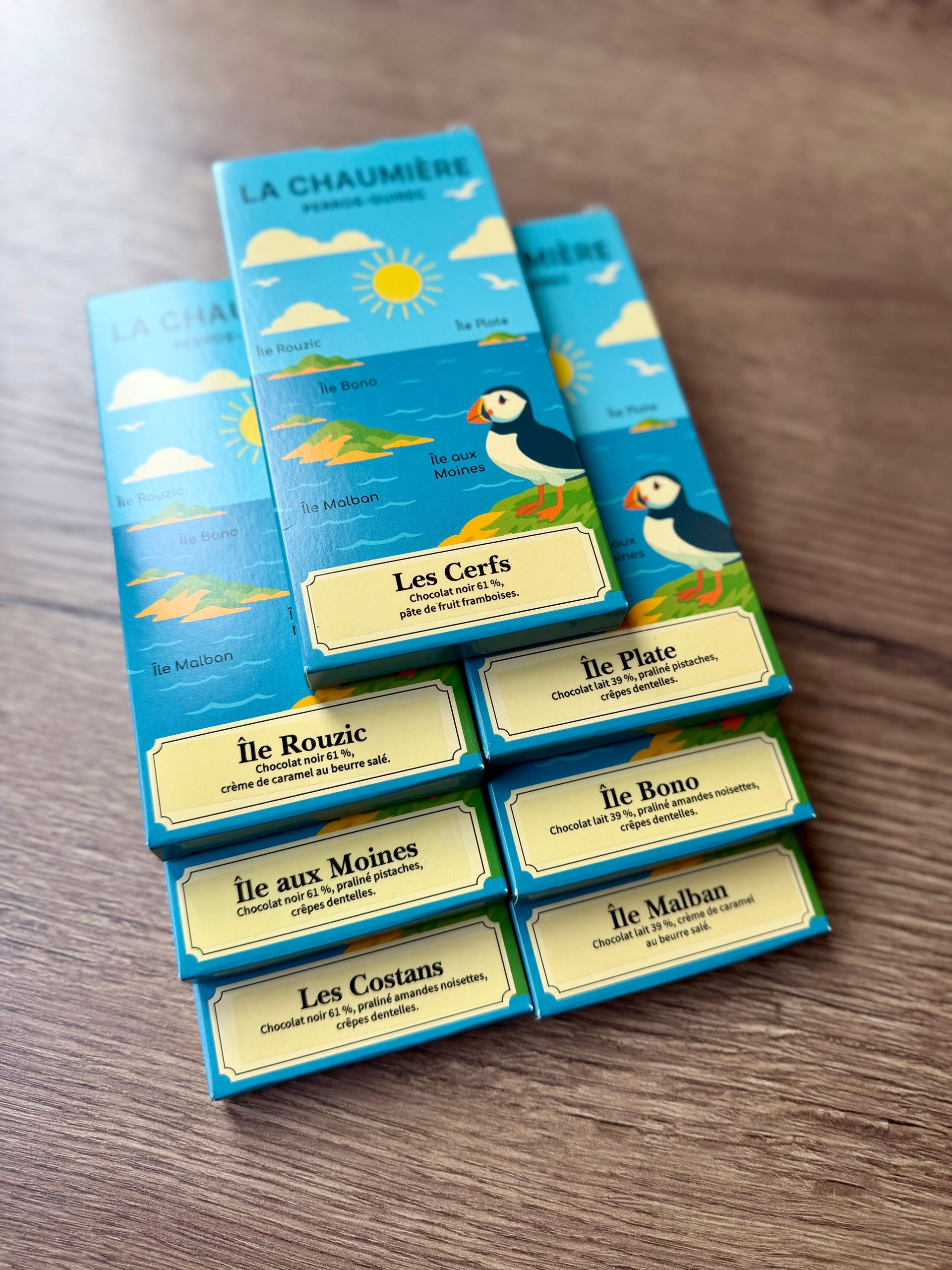 Pralinés, ganaches, orangettes, moulages, coffrets raffinés : toutes nos collections sont imaginées à Perros-Guirec, puis confectionnées avec patience et élégance. Que ce soit pour offrir, partager ou savourer, nos chocolats célèbrent le plaisir simple et généreux du bon goût.