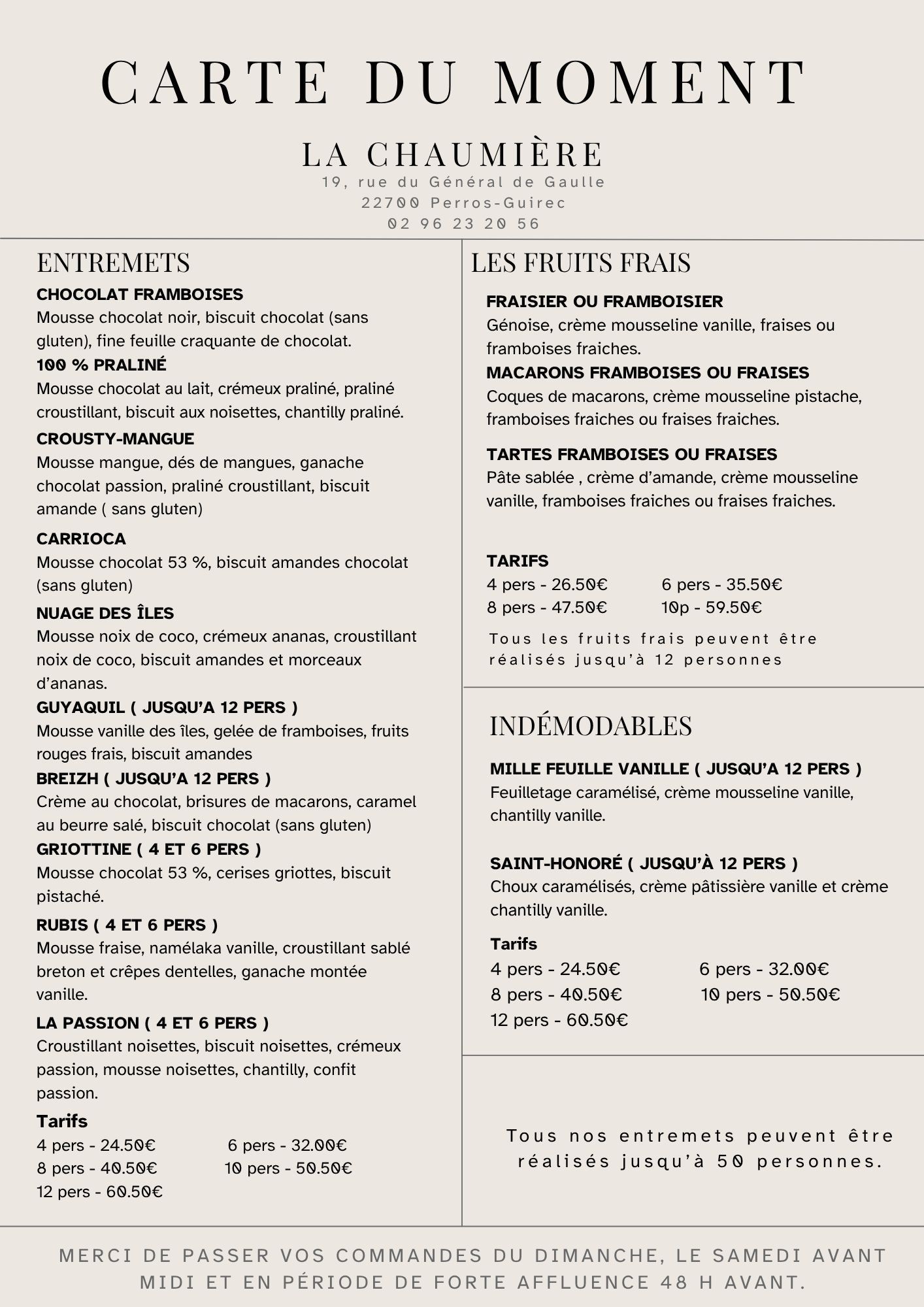 Nos pâtisseries évoluent au fil des saisons, selon les inspirations de l’atelier, tout en conservant l’âme de La Chaumière :